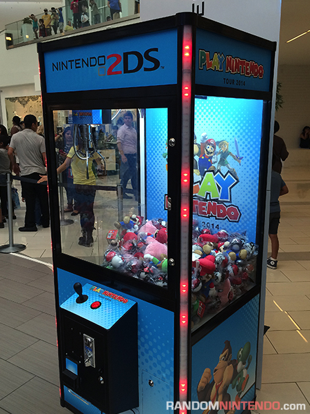 To go with those photo ops are of course the games themselves. In all, Nintendo is showing off eight 3DS titles: Kirby: Triple Deluxe, Yoshi’s New Island, Pokemon X & Y, The Legend of Zelda: A Link Between Worlds, Donkey Kong Country Returns 3D, Super Mario 3D Land, Mario Kart 7, and the Target-exclusive Photos with Mario AR cards. To get visitors to try everything, Nintendo is also giving out character badge sheets. These amount to nothing more than stickers to collect, but once you have a full set, you earn a free chance at the Play Nintendo Tour claw machine, which is stuffed with an assortment of Nintendo character plushes. One other major component of the tour is the Mario Kart tournament, which features qualifying races in Mario Kart 7 (on 2DS units tethered to fake go-kart seats, naturally) and Mario Kart 8 semifinals and finals on a giant screen. The champion goes home with a Mario Kart Wii U bundle, which instantly made this the most popular part of the Play Nintendo Tour. In fact, so many people signed up that Nintendo had to resort to a deli counter-style number-calling system.