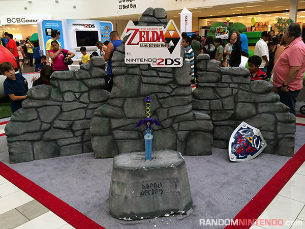 The most notable part of the Play Nintendo Tour is the custom setup. Gone are the simple kiosks we saw at Nintendo’s 2013 holiday tour, instead replaced with what amounts to a more portable version of the photo ops Nintendo brought to Comic-Con 2013 and E3 2013. Each section of the Play Nintendo Tour features its own look and feel depending on the game, and includes both spaces to try the demos and built-in photo opportunities. If you go to the Legend of Zelda: A Link Between Worlds area, for example, you’ll be able to pose with a prop Master Sword and Hylian Shield in front of a stone backdrop. Or you can check out the Kirby: Triple Deluxe section to sit on Kirby’s warp star. Or you can head over to the Super Mario 3D Land display to pose alongside an end-level flagpole. All these photo ops, along with a giant 2DS photo frame that places you “inside” the system’s top screen, are smart moves for Nintendo. They not only keep fans busy while waiting for demos to free up, but also harness everyone’s love of selfies to help Nintendo gain maximum exposure (#PlayNintendoTour).